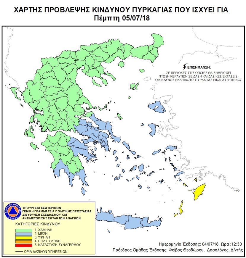 Ημερήσιος Χάρτης Πρόβλεψης Κινδύνου Πυρκαγιάς 05/07/2018