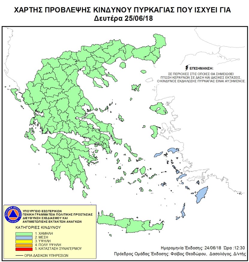 Ημερήσιος Χάρτης Πρόβλεψης Κινδύνου Πυρκαγιάς 25/06/2018