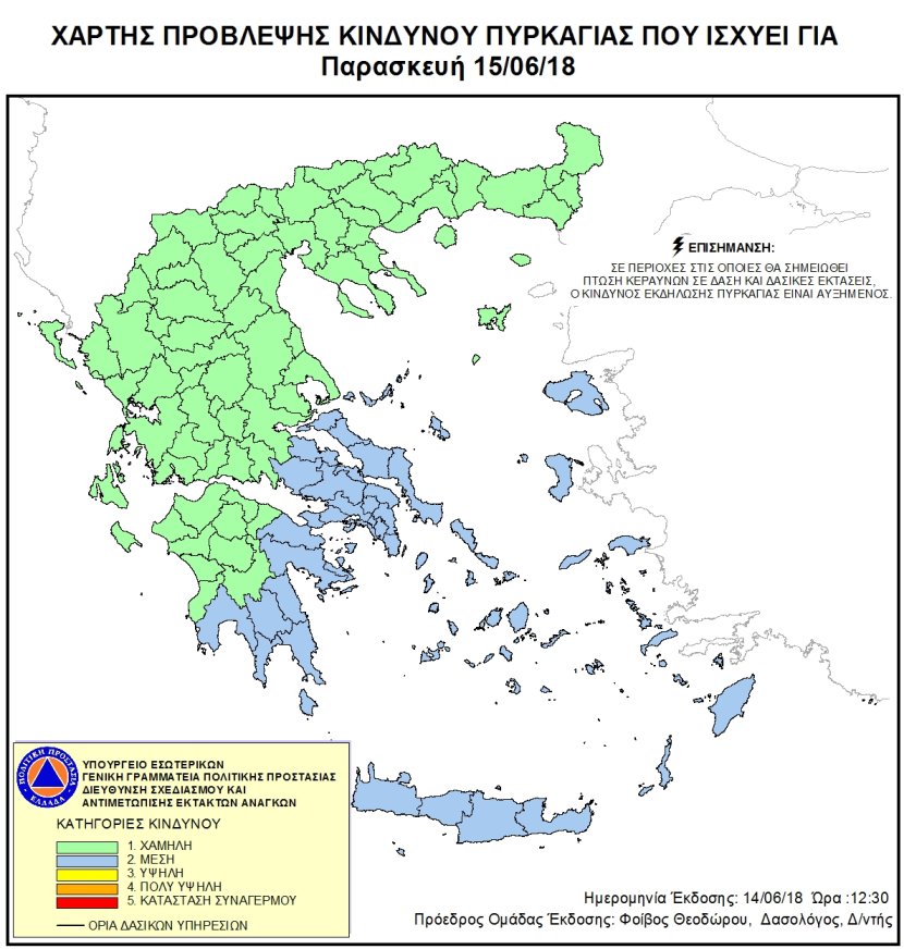Ημερήσιος Χάρτης Πρόβλεψης Κινδύνου Πυρκαγιάς 15/06/2018