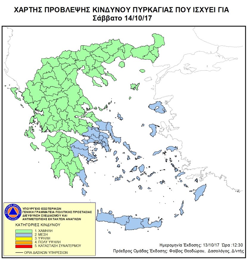 Ημερήσιος Χάρτης Πρόβλεψης Κινδύνου Πυρκαγιάς 14/10/2017