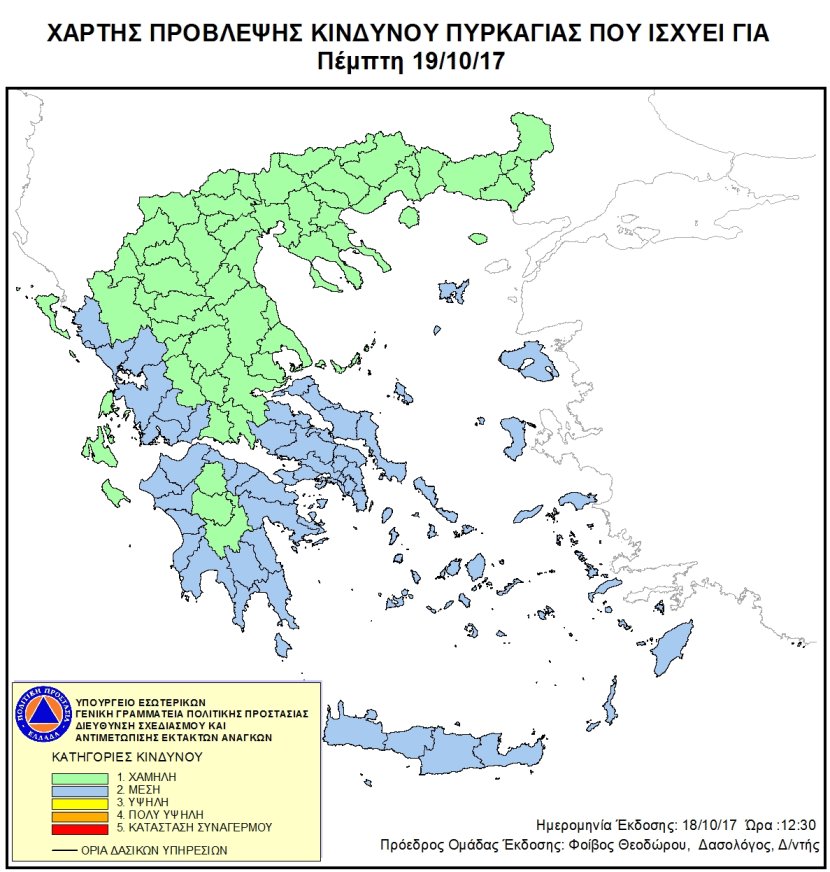 Ημερήσιος Χάρτης Πρόβλεψης Κινδύνου Πυρκαγιάς 19/10/2017
