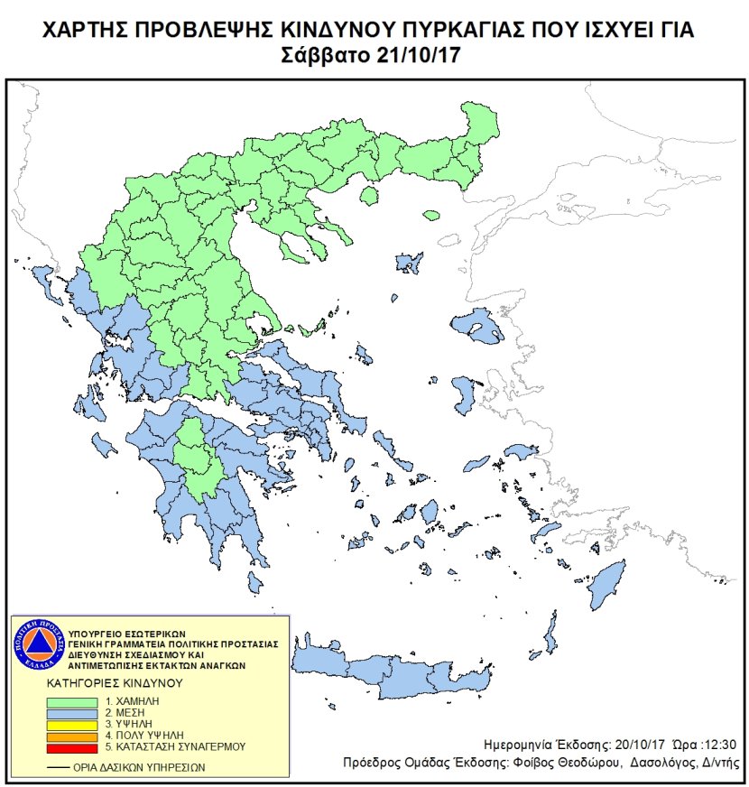 Ημερήσιος Χάρτης Πρόβλεψης Κινδύνου Πυρκαγιάς 20/10/2017