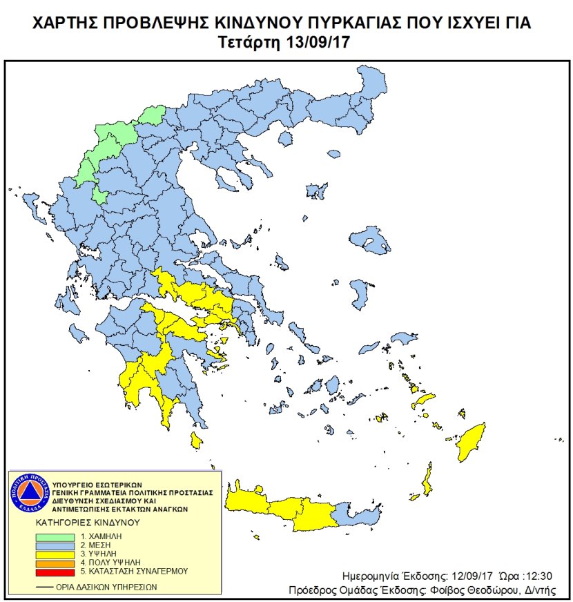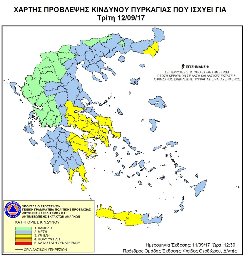 Ημερήσιος Χάρτης Πρόβλεψης Κινδύνου Πυρκαγιάς 12/09/2017