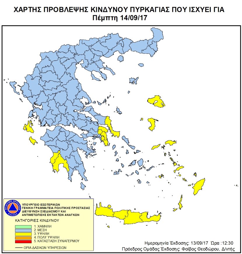 Ημερήσιος Χάρτης Πρόβλεψης Κινδύνου Πυρκαγιάς 13/09/2017