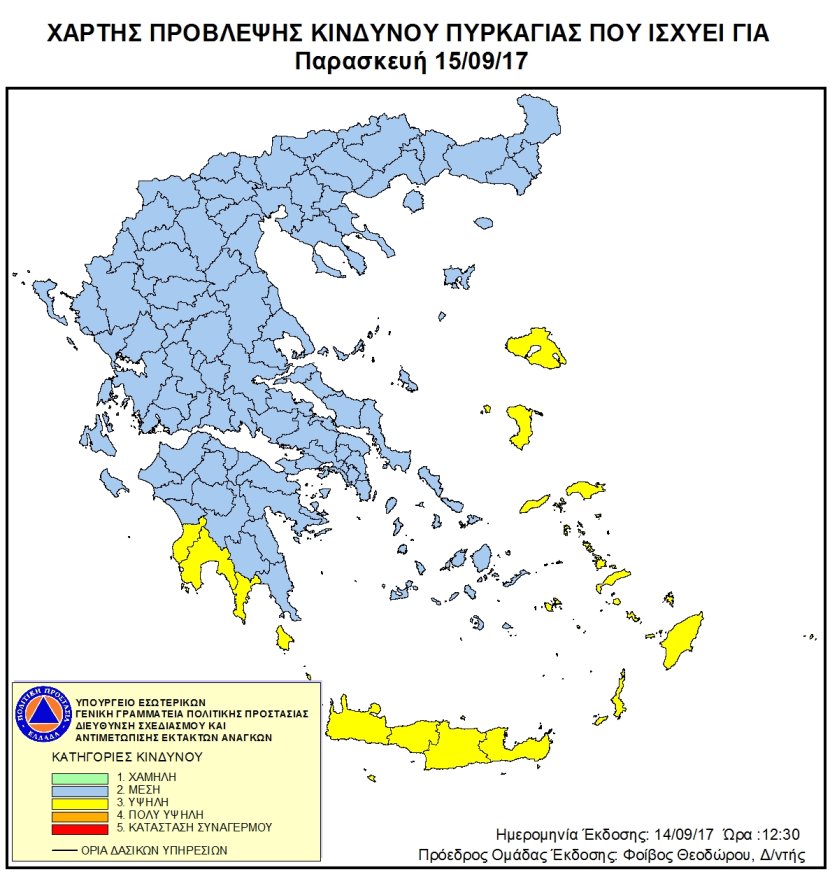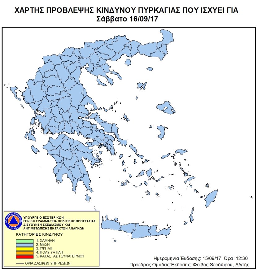 Ημερήσιος Χάρτης Πρόβλεψης Κινδύνου Πυρκαγιάς 15/09/2017