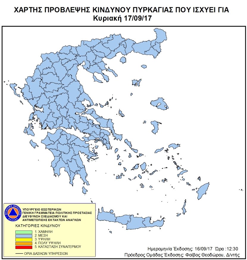 Ημερήσιος Χάρτης Πρόβλεψης Κινδύνου Πυρκαγιάς 16/09/2017