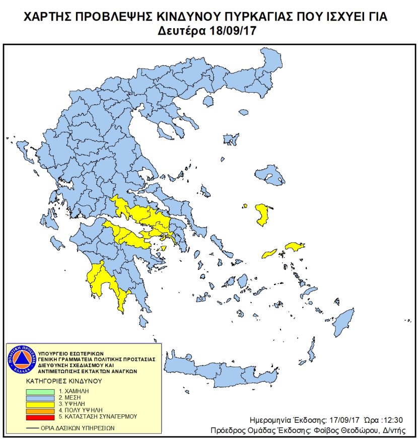 Ημερήσιος Χάρτης Πρόβλεψης Κινδύνου Πυρκαγιάς 17/09/2017