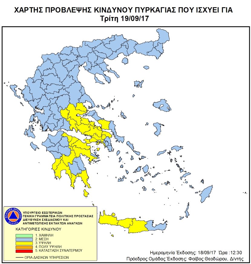 Ημερήσιος Χάρτης Πρόβλεψης Κινδύνου Πυρκαγιάς 19/09/2017