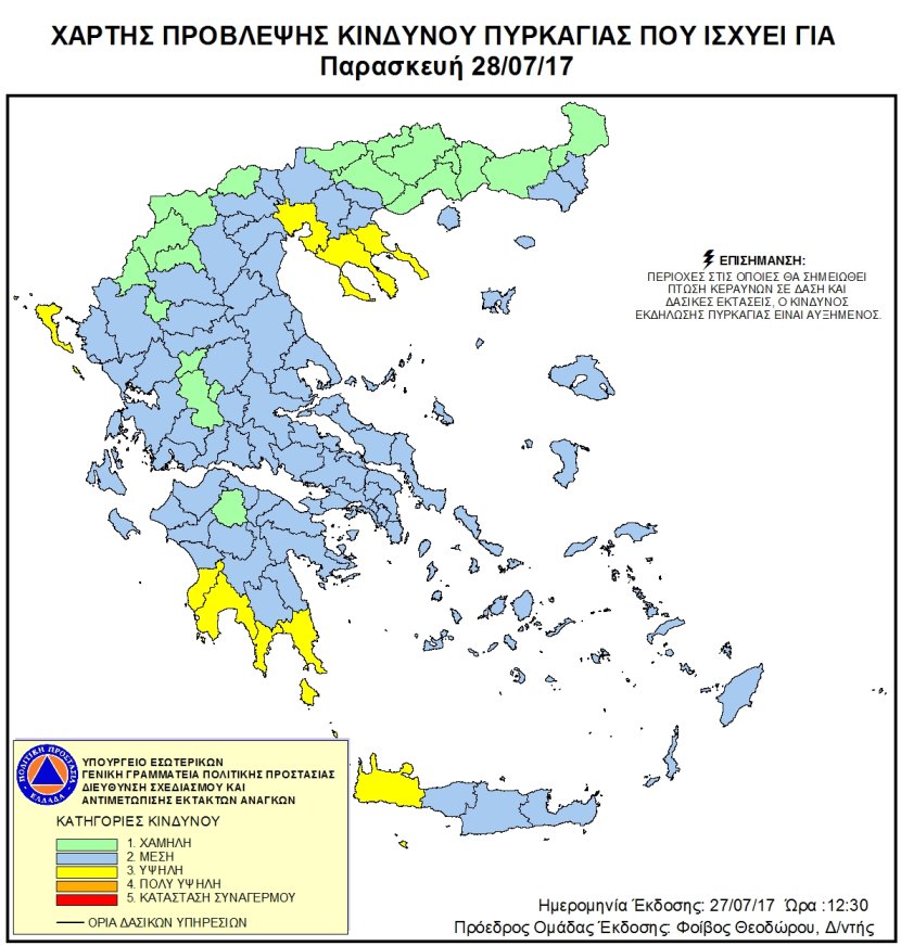 Ημερήσιος Χάρτης Πρόβλεψης Κινδύνου Πυρκαγιάς 27/07/2017