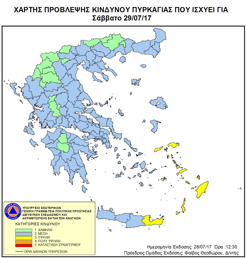 Ημερήσιος Χάρτης Πρόβλεψης Κινδύνου Πυρκαγιάς 29/07/2017