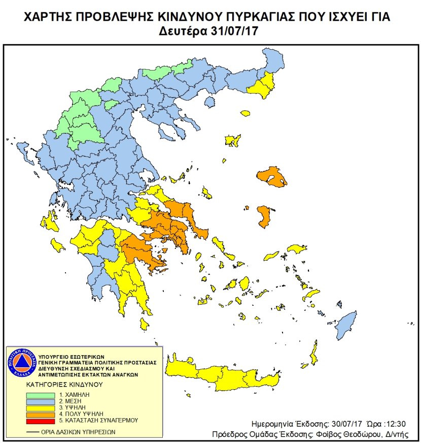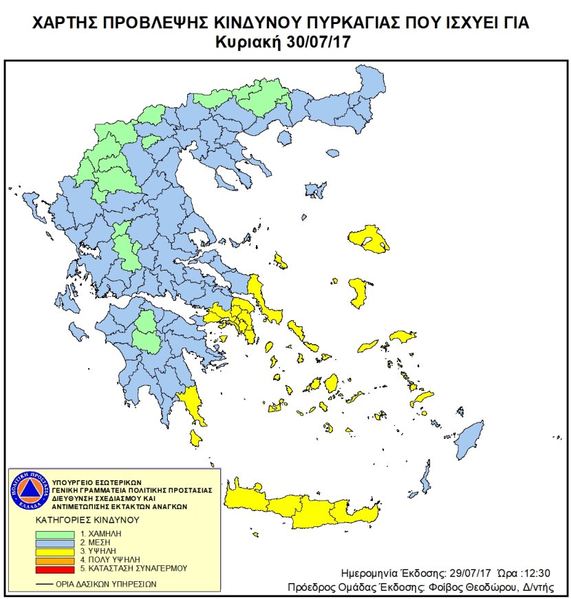Ημερήσιος Χάρτης Πρόβλεψης Κινδύνου Πυρκαγιάς 30/07/2017