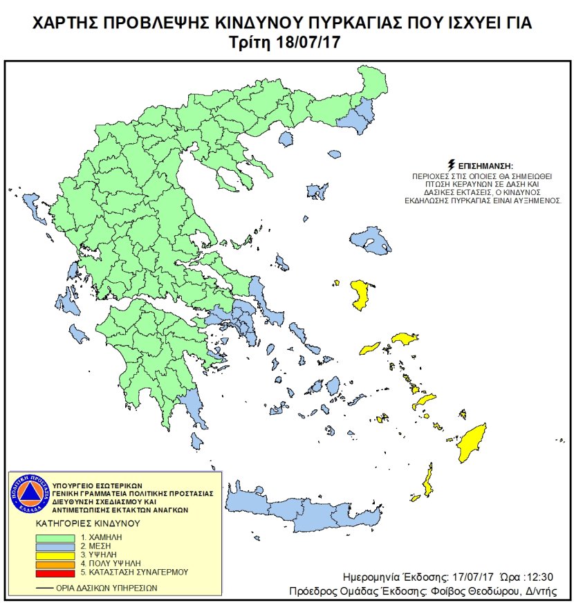 Ημερήσιος Χάρτης Πρόβλεψης Κινδύνου Πυρκαγιάς 18/07/2017