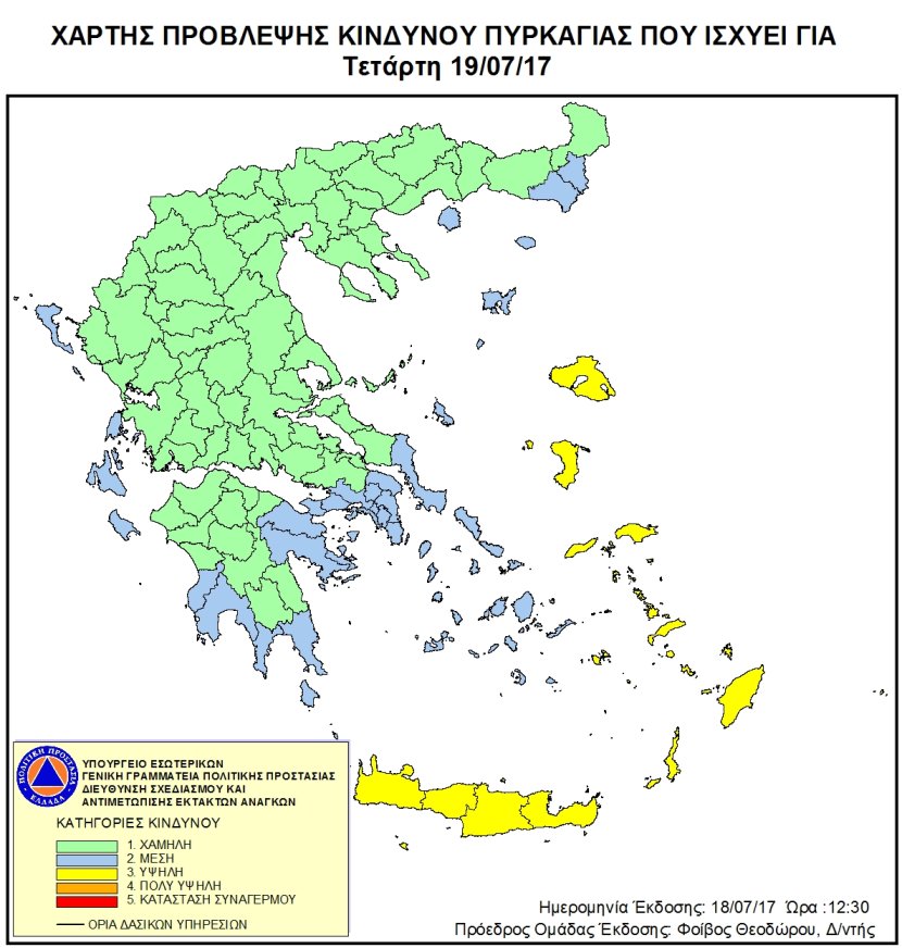 Ημερήσιος Χάρτης Πρόβλεψης Κινδύνου Πυρκαγιάς 19/07/2017