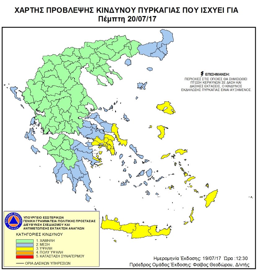 Ημερήσιος Χάρτης Πρόβλεψης Κινδύνου Πυρκαγιάς 20/07/2017