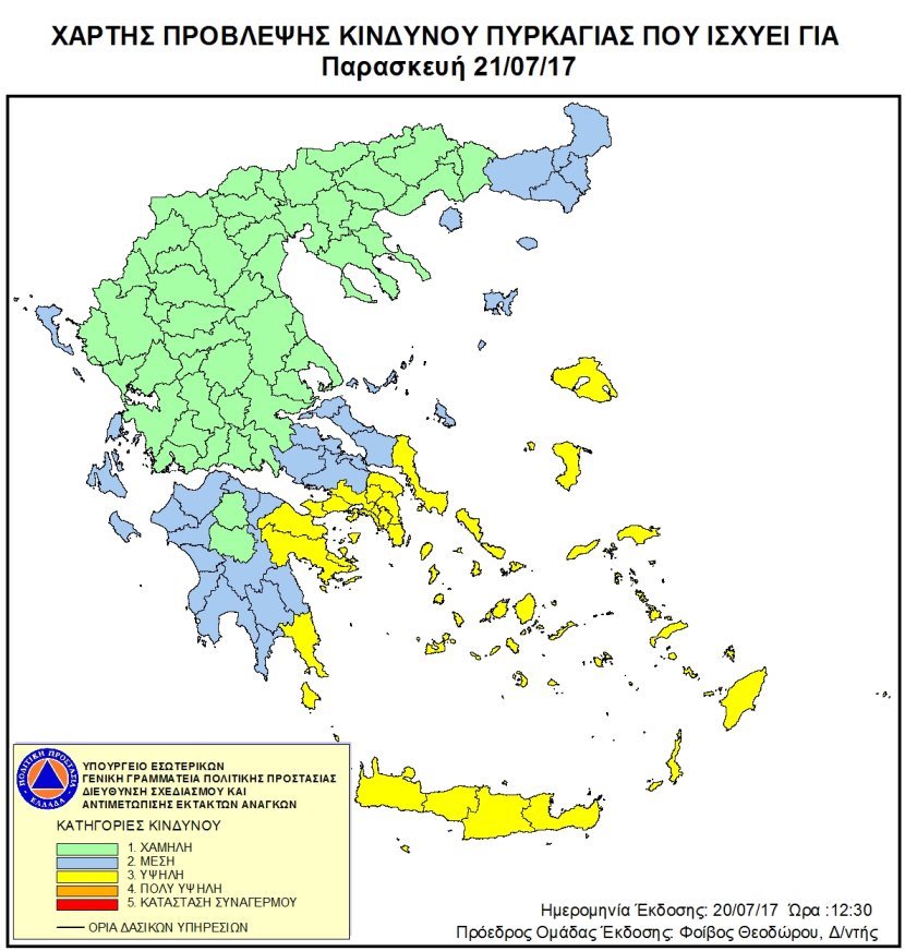 Ημερήσιος Χάρτης Πρόβλεψης Κινδύνου Πυρκαγιάς 21/07/2017