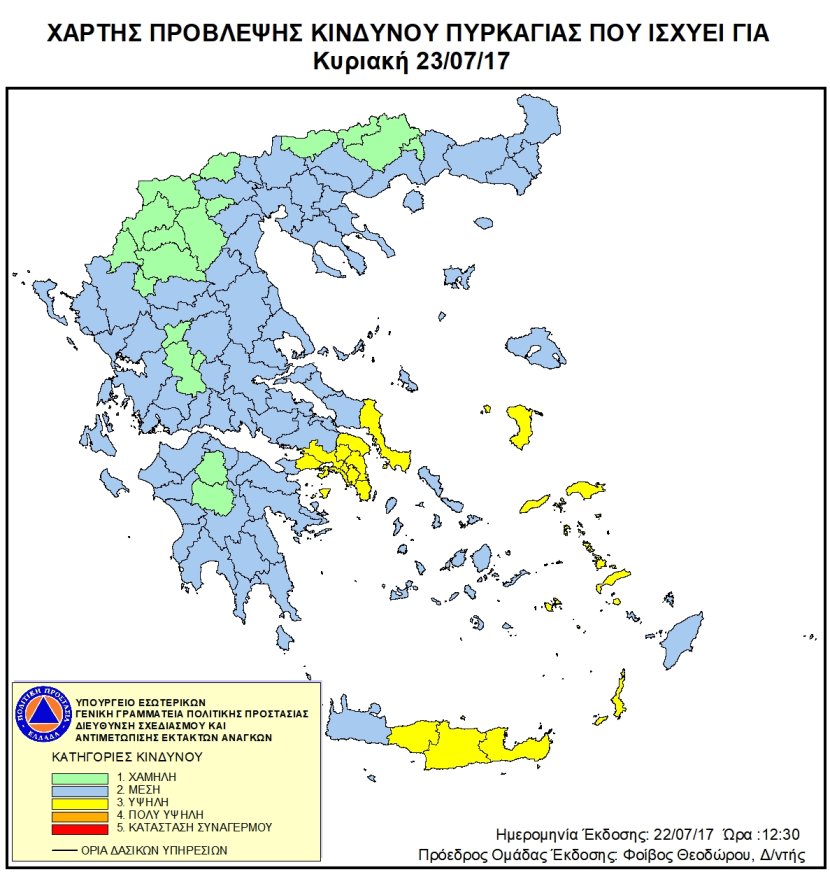 Ημερήσιος Χάρτης Πρόβλεψης Κινδύνου Πυρκαγιάς 22/07/2017