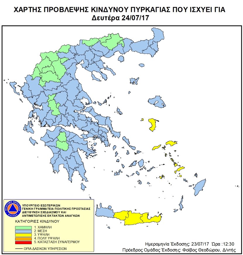 Ημερήσιος Χάρτης Πρόβλεψης Κινδύνου Πυρκαγιάς 24/07/2017