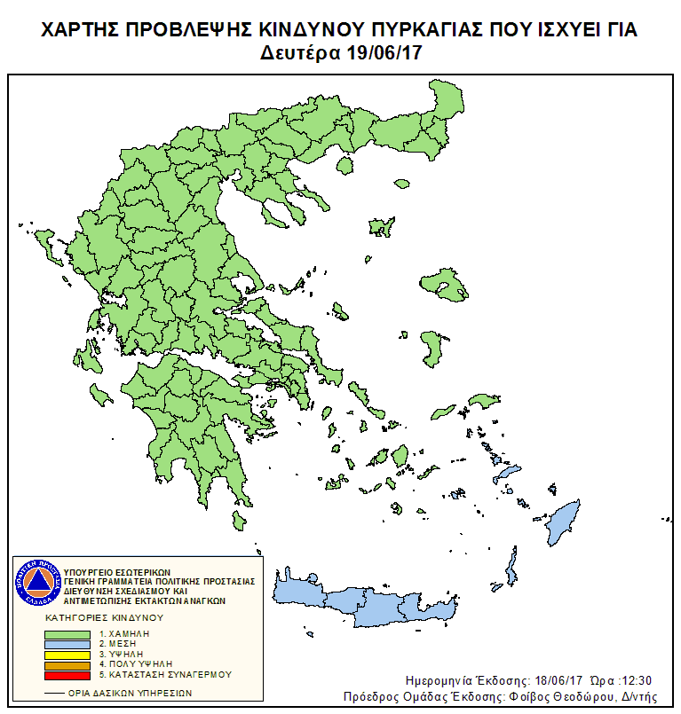 Ημερήσιος Χάρτης Πρόβλεψης Κινδύνου Πυρκαγιάς 19/06/2017