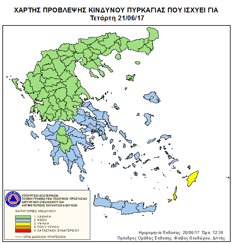 Ημερήσιος Χάρτης Πρόβλεψης Κινδύνου Πυρκαγιάς 21/06/2017