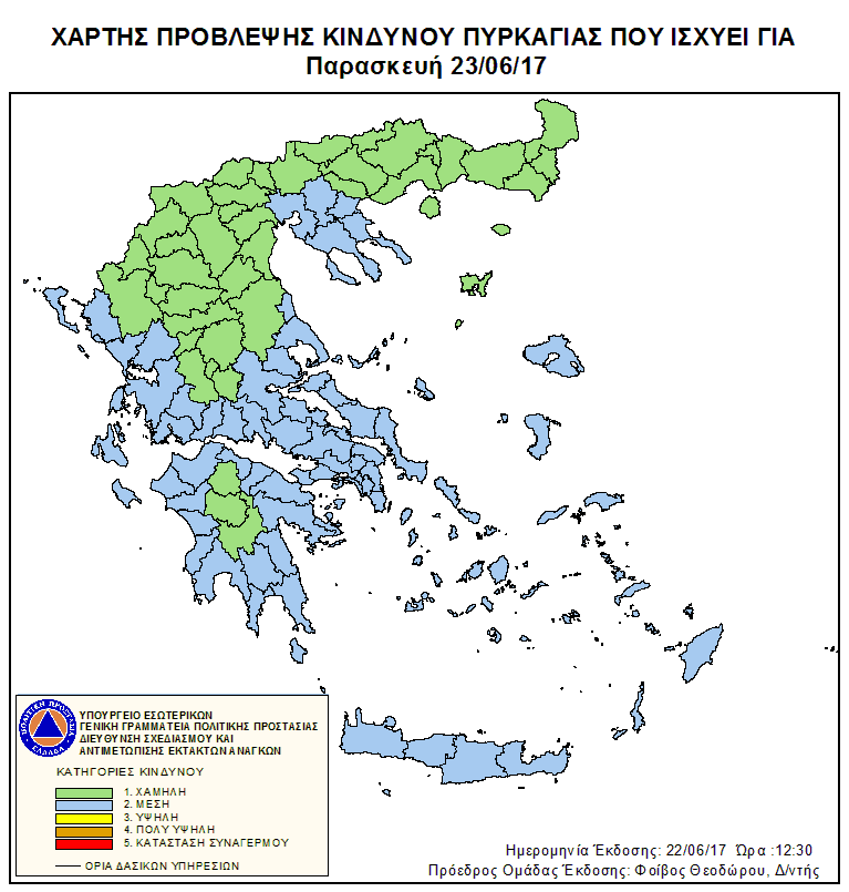 Ημερήσιος Χάρτης Πρόβλεψης Κινδύνου Πυρκαγιάς 22/06/2017