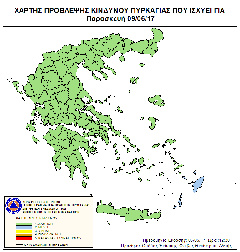 Ημερήσιος Χάρτης Πρόβλεψης Κινδύνου Πυρκαγιάς 09/06/2017