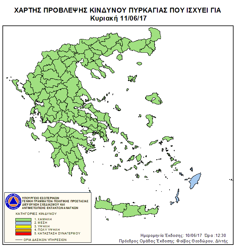 Ημερήσιος Χάρτης Πρόβλεψης Κινδύνου Πυρκαγιάς 10/06/2017