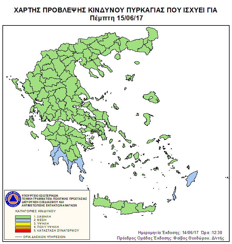 Ημερήσιος Χάρτης Πρόβλεψης Κινδύνου Πυρκαγιάς 15/06/2017