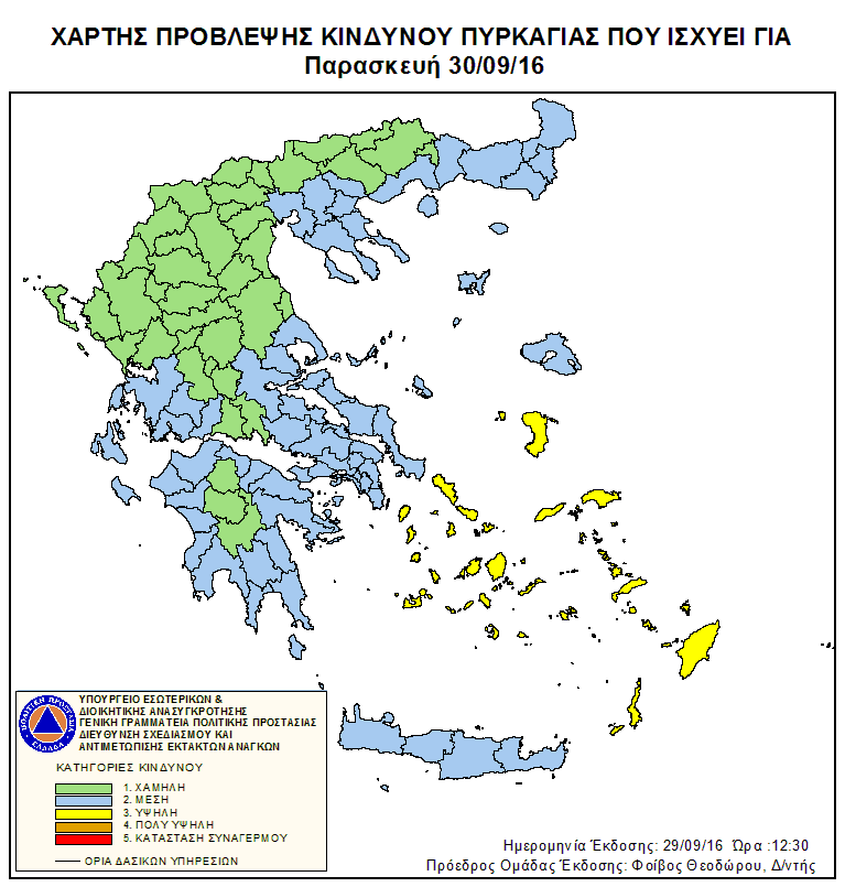 Ημερήσιος Χάρτης Πρόβλεψης Κινδύνου Πυρκαγιάς 30/09/2016