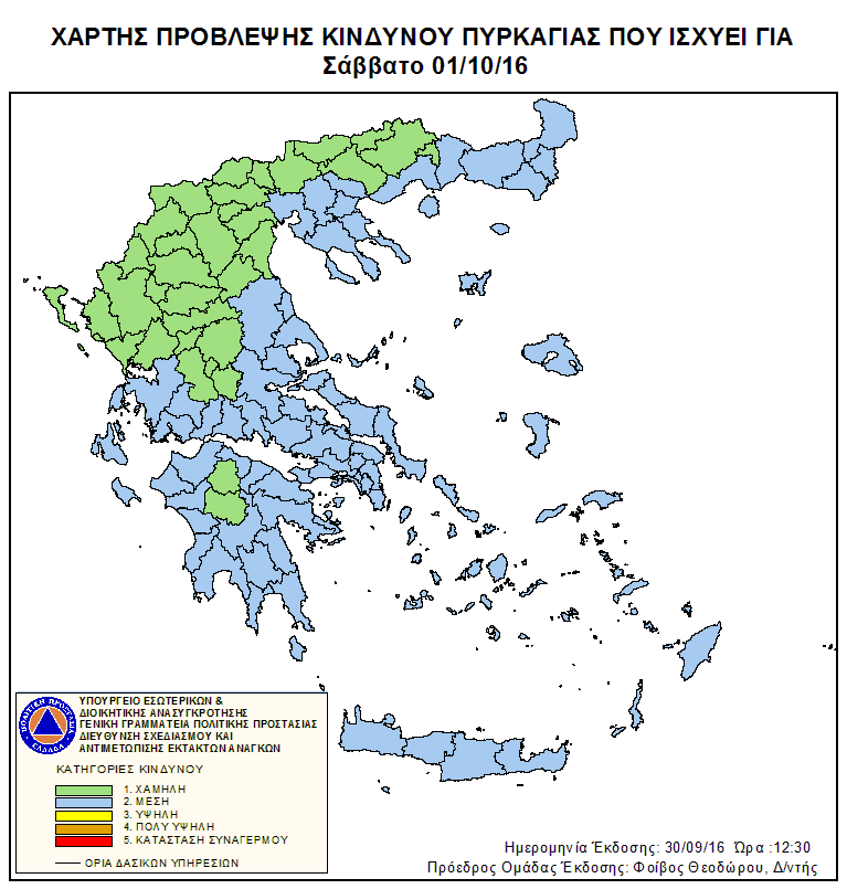 Ημερήσιος Χάρτης Πρόβλεψης Κινδύνου Πυρκαγιάς 01/10/2016
