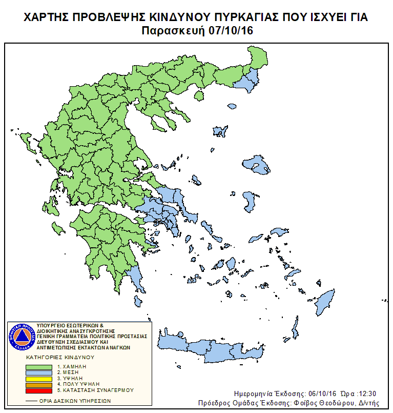 Ημερήσιος Χάρτης Πρόβλεψης Κινδύνου Πυρκαγιάς 06/10/2016