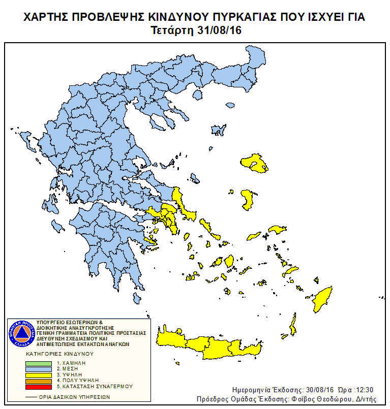 Ημερήσιος Χάρτης Πρόβλεψης Κινδύνου Πυρκαγιάς 30/08/2016