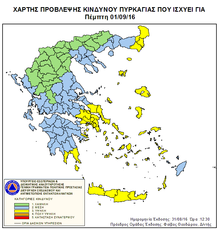 Ημερήσιος Χάρτης Πρόβλεψης Κινδύνου Πυρκαγιάς 01/09/2016