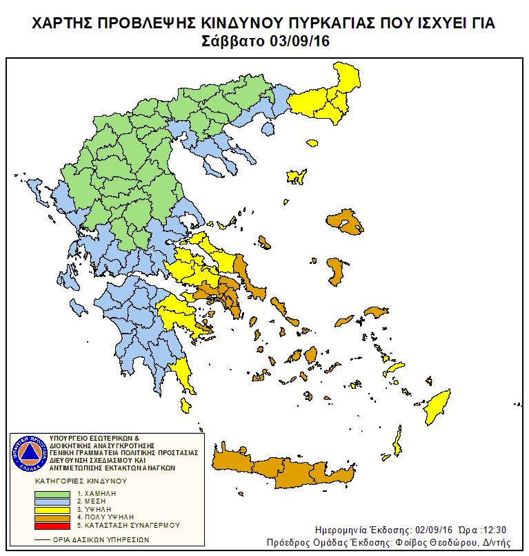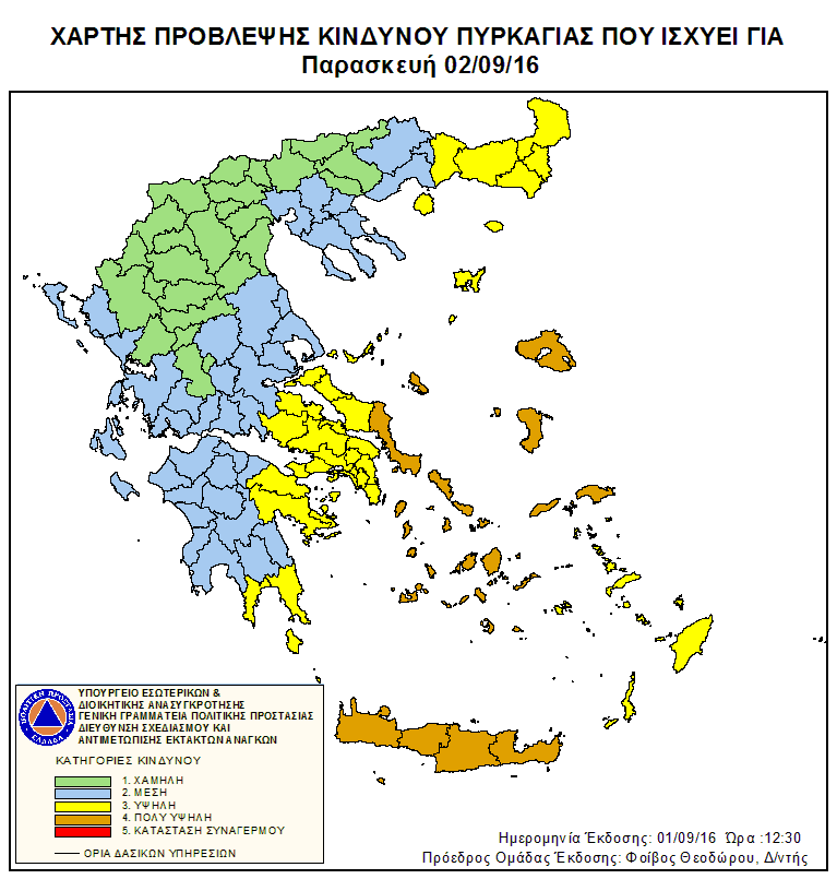Ημερήσιος Χάρτης Πρόβλεψης Κινδύνου Πυρκαγιάς 02/09/2016