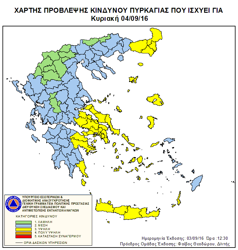 Ημερήσιος Χάρτης Πρόβλεψης Κινδύνου Πυρκαγιάς 03/09/2016