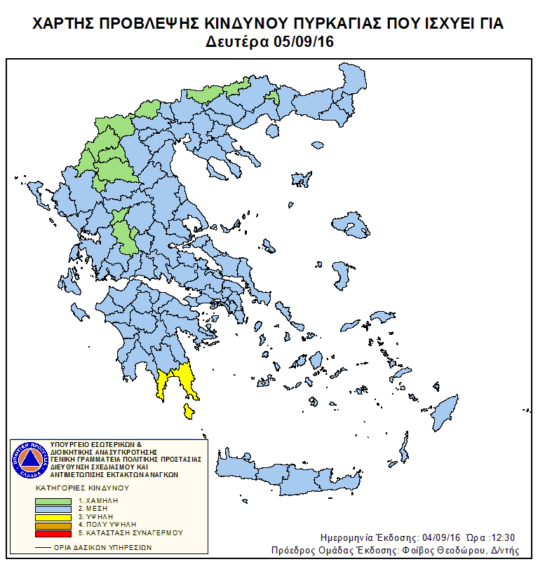 Ημερήσιος Χάρτης Πρόβλεψης Κινδύνου Πυρκαγιάς 05/09/2016