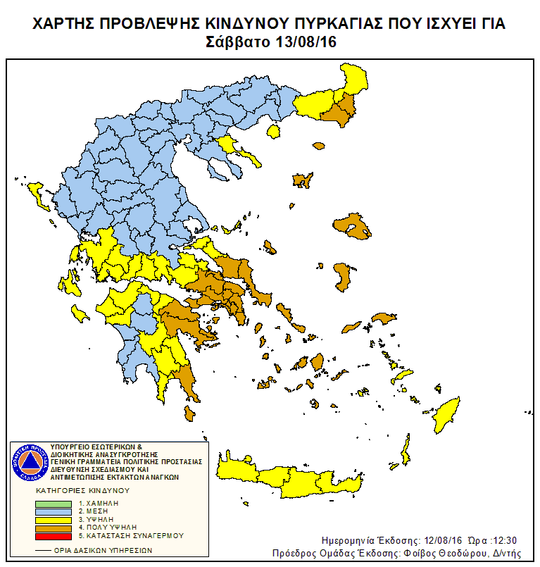 Ημερήσιος Χάρτης Πρόβλεψης Κινδύνου Πυρκαγιάς 13/08/2016
