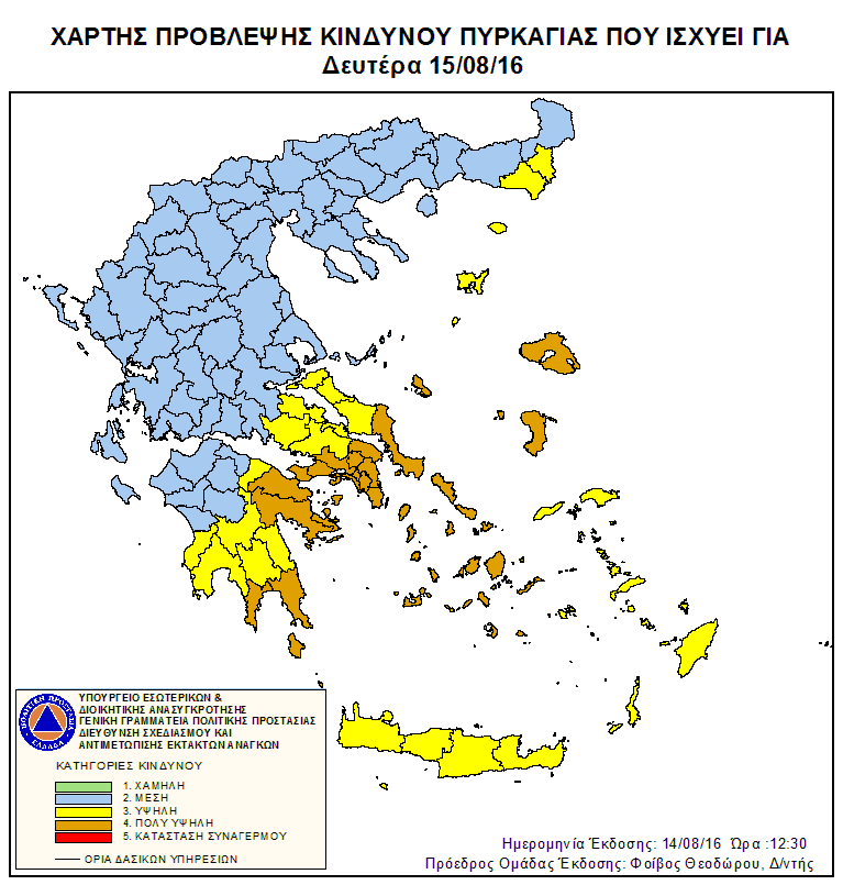 Ημερήσιος Χάρτης Πρόβλεψης Κινδύνου Πυρκαγιάς 15/08/2016