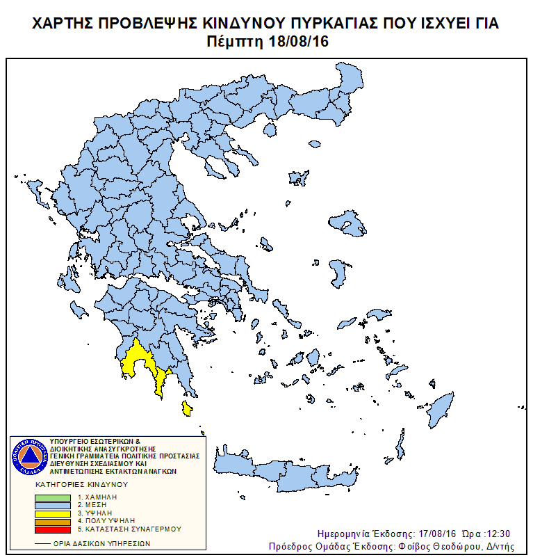Ημερήσιος Χάρτης Πρόβλεψης Κινδύνου Πυρκαγιάς 18/08/2016