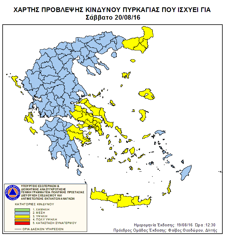 Ημερήσιος Χάρτης Πρόβλεψης Κινδύνου Πυρκαγιάς 19/08/2016