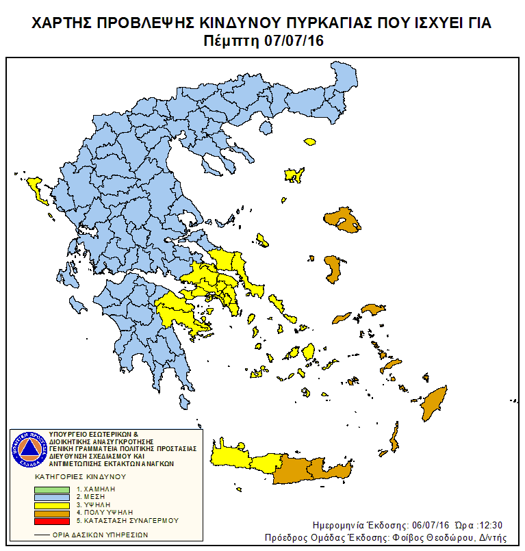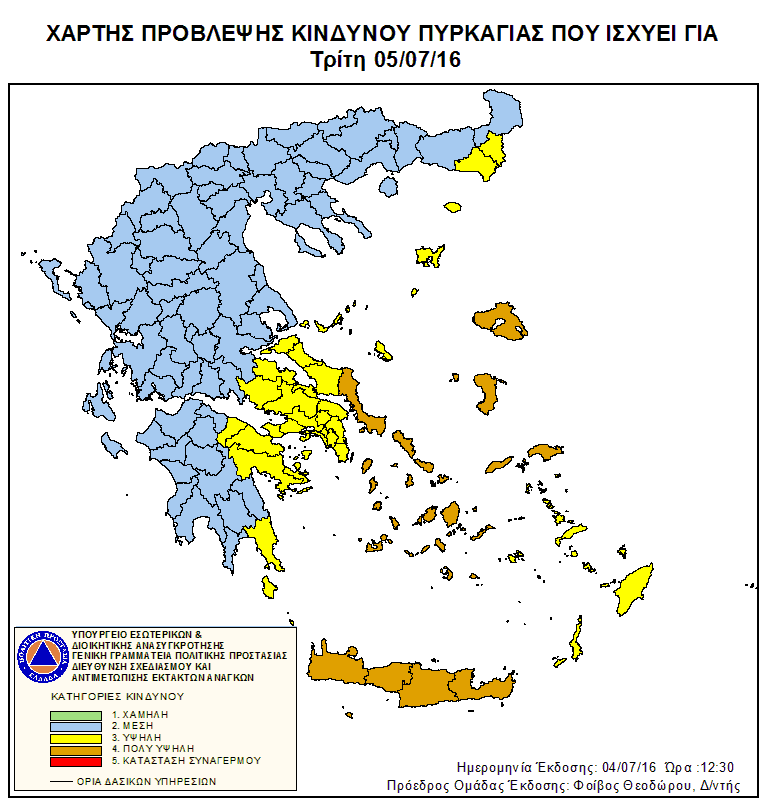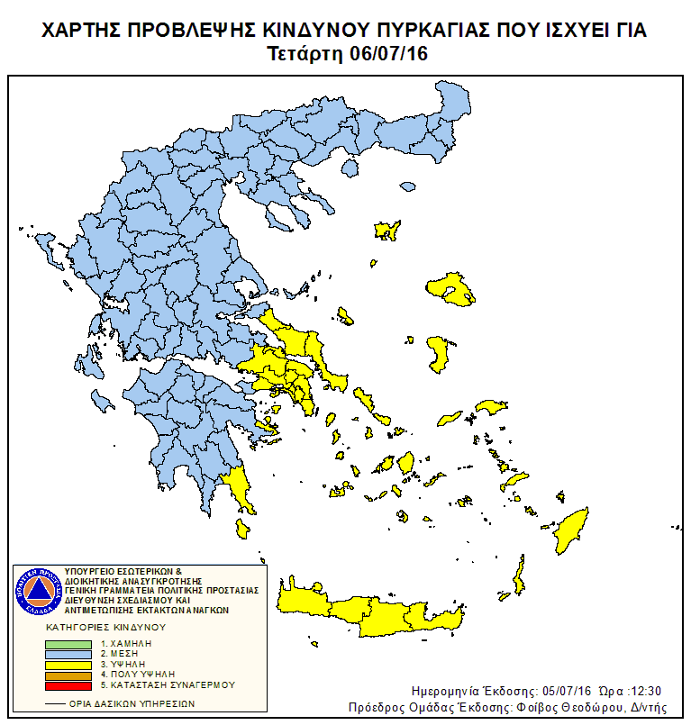 Ημερήσιος Χάρτης Πρόβλεψης Κινδύνου Πυρκαγιάς 05/07/2016