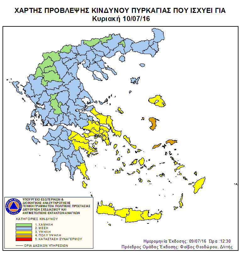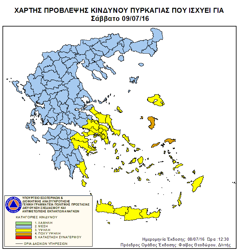 Ημερήσιος Χάρτης Πρόβλεψης Κινδύνου Πυρκαγιάς 09/07/2016