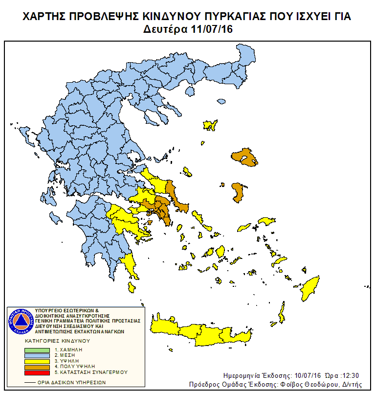 Ημερήσιος Χάρτης Πρόβλεψης Κινδύνου Πυρκαγιάς 11/07/2016