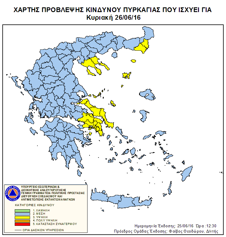 Ημερήσιος Χάρτης Πρόβλεψης Κινδύνου Πυρκαγιάς 26/06/2016