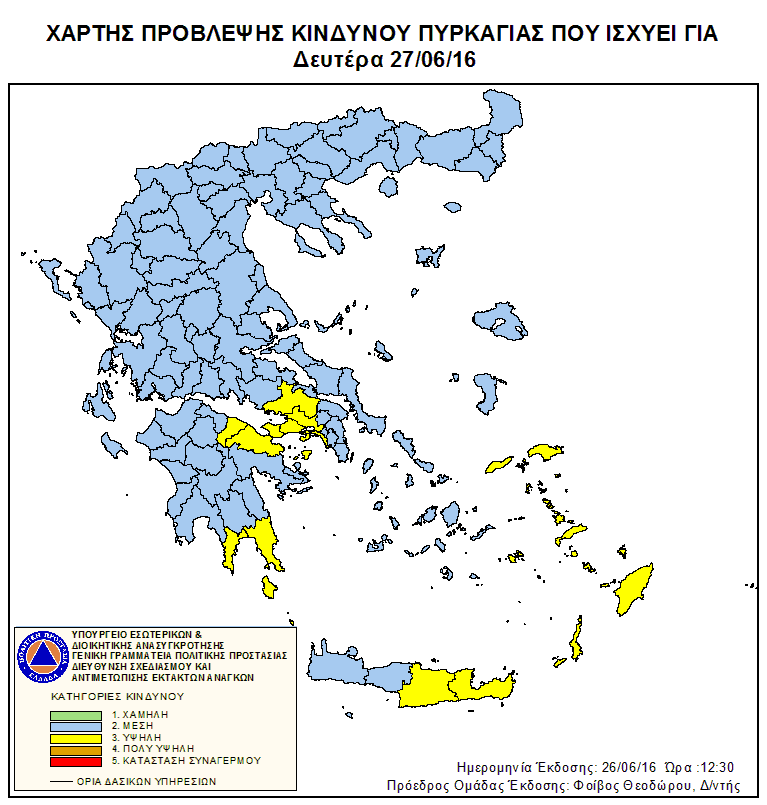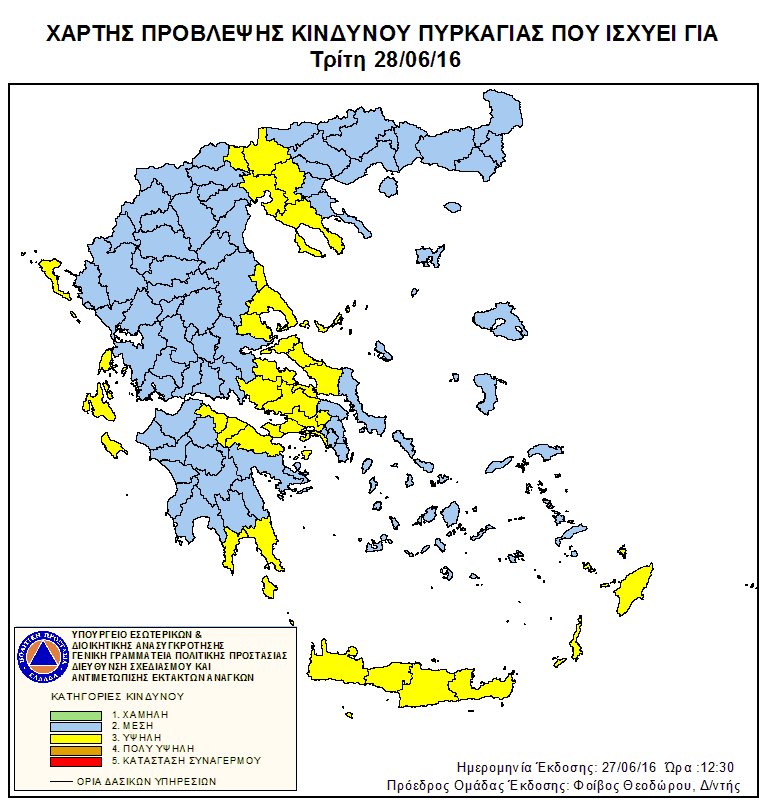 Ημερήσιος Χάρτης Πρόβλεψης Κινδύνου Πυρκαγιάς 27/06/2016