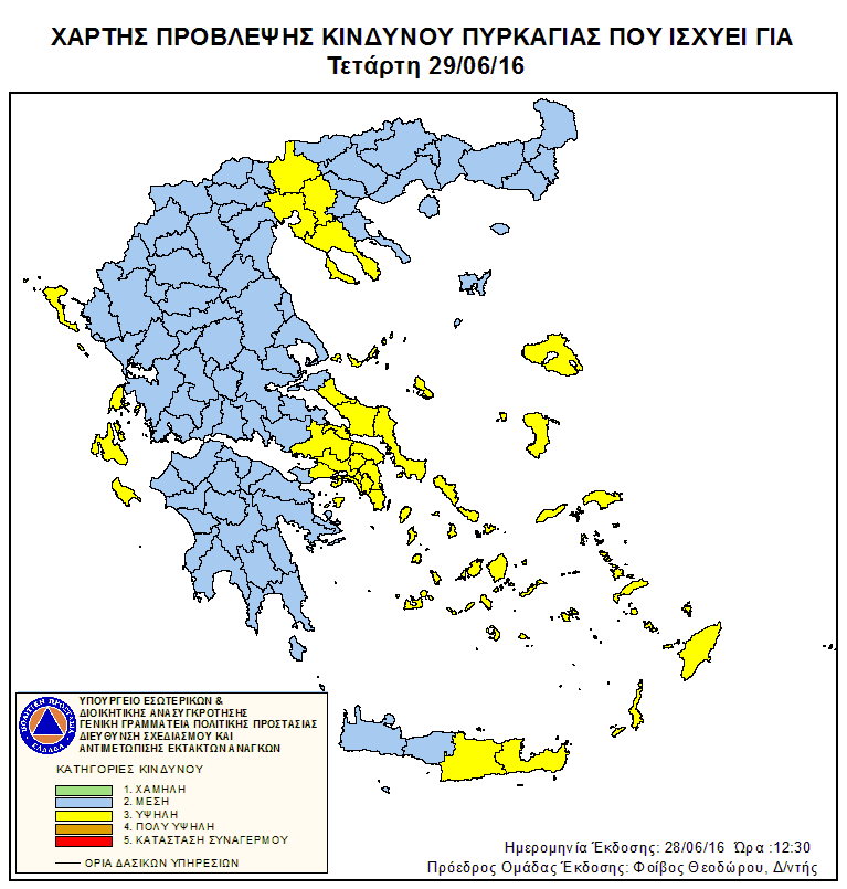 Ημερήσιος Χάρτης Πρόβλεψης Κινδύνου Πυρκαγιάς 29/06/2016