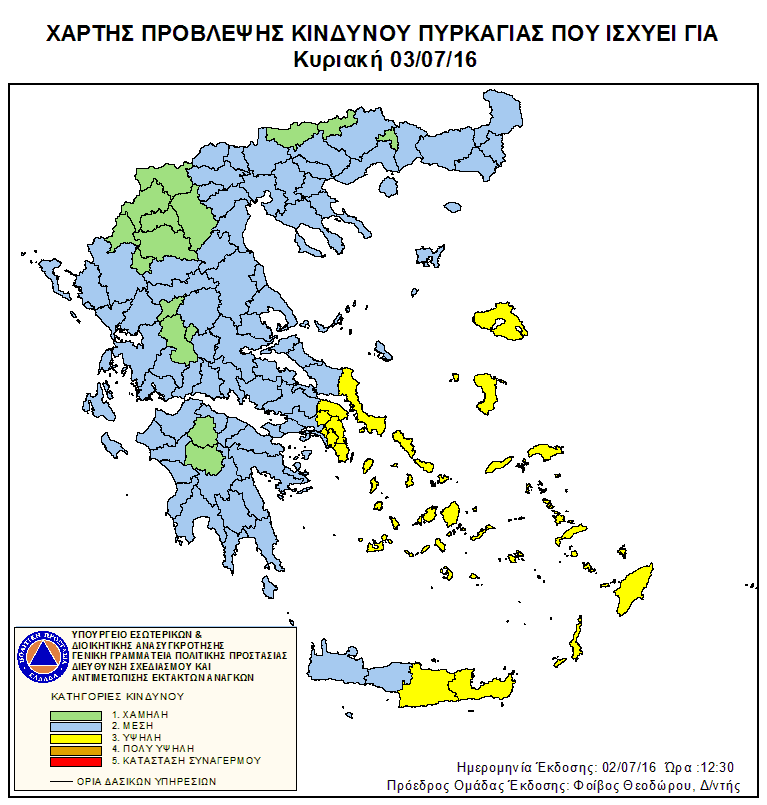 Ημερήσιος Χάρτης Πρόβλεψης Κινδύνου Πυρκαγιάς 02/07/2016