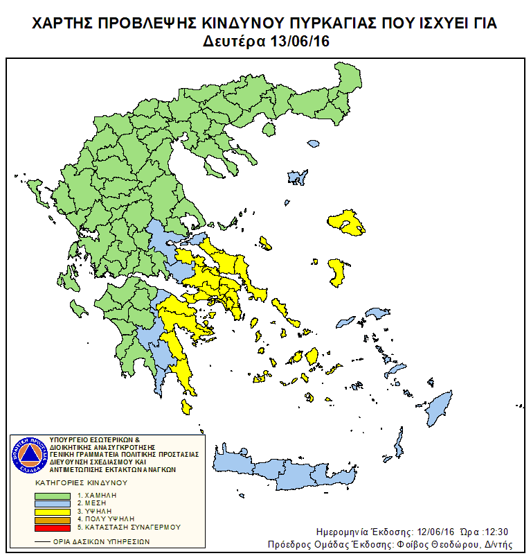 Ημερήσιος Χάρτης Πρόβλεψης Κινδύνου Πυρκαγιάς 12/06/2016