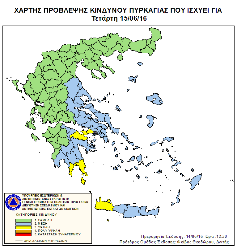 Ημερήσιος Χάρτης Πρόβλεψης Κινδύνου Πυρκαγιάς 15/06/2016