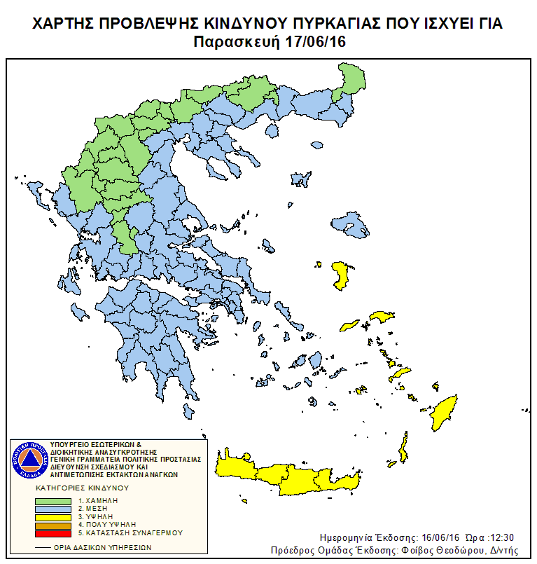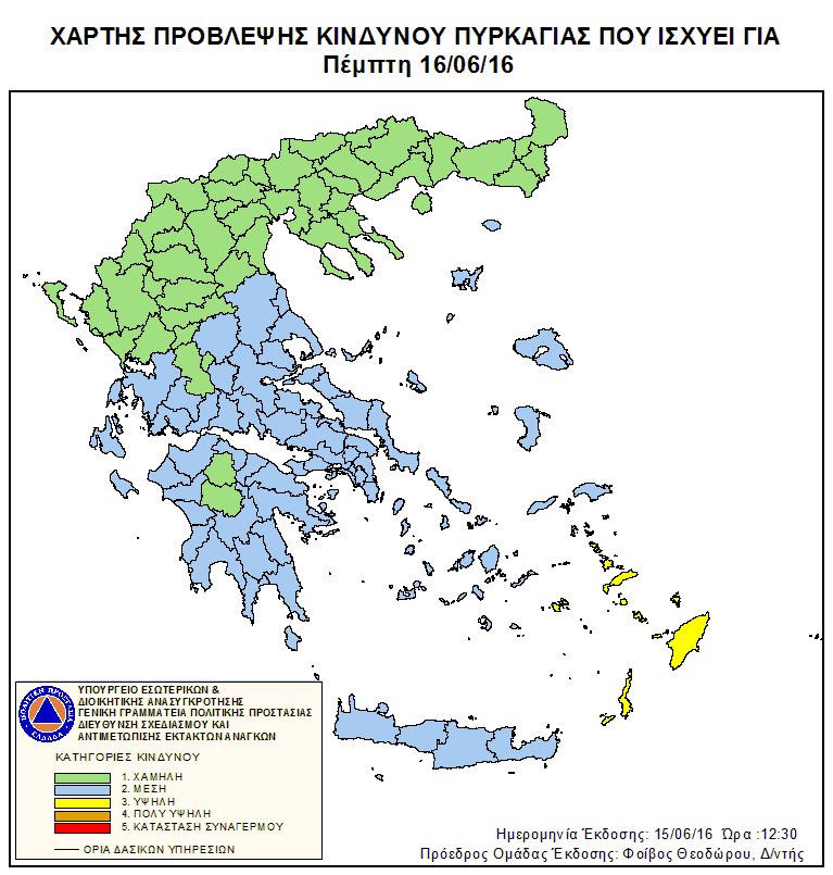 Ημερήσιος Χάρτης Πρόβλεψης Κινδύνου Πυρκαγιάς 16/06/2016