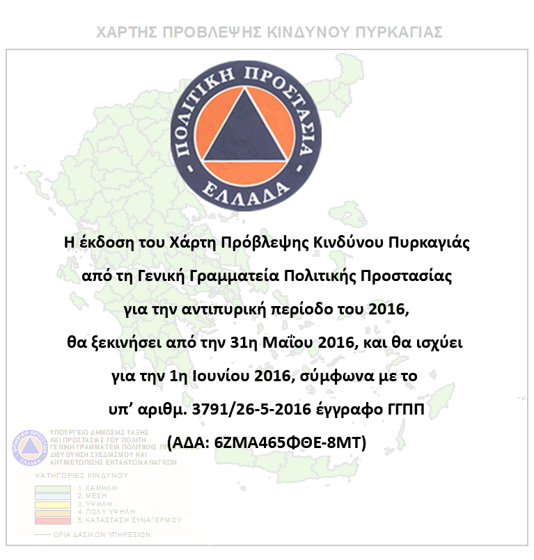 Ημερήσιος Χάρτης Πρόβλεψης Κινδύνου Πυρκαγιάς 01/06/2016